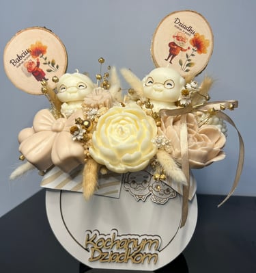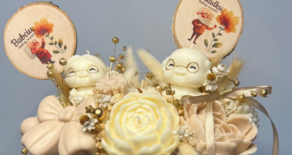 Te kompozycje zostały stworzone z myślą o wnukach, którzy chcą podarować swoim kochanym Dziadkom coś naprawdę wyjątkowego – piękną dekorację i cudowny zapach w jednym.