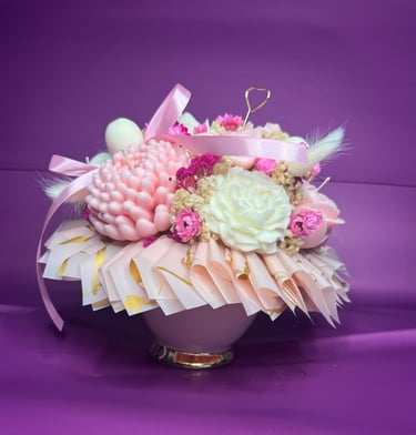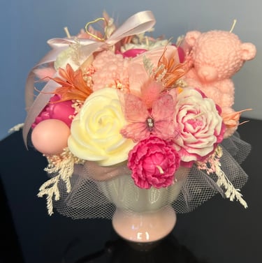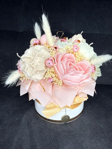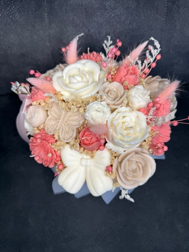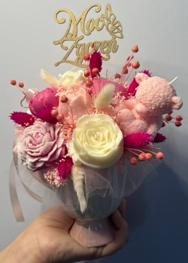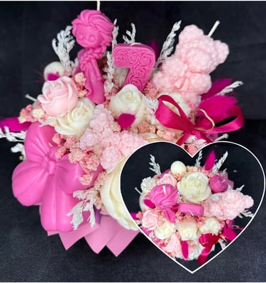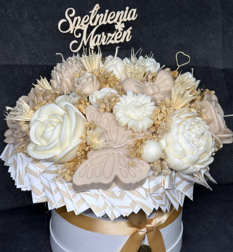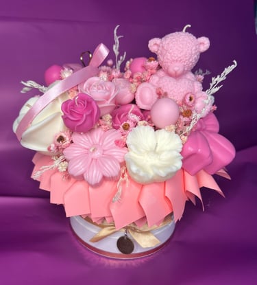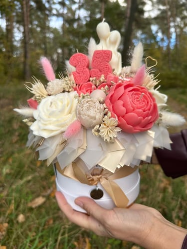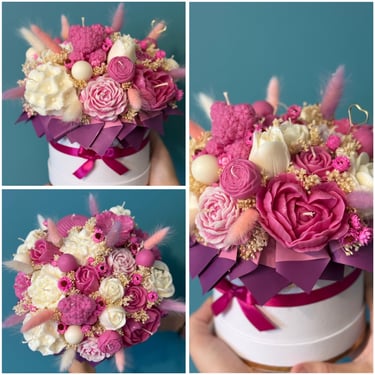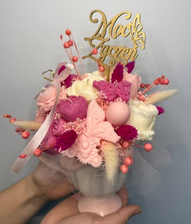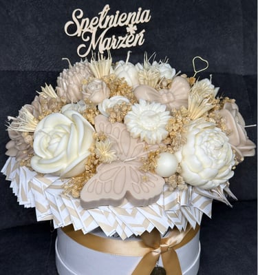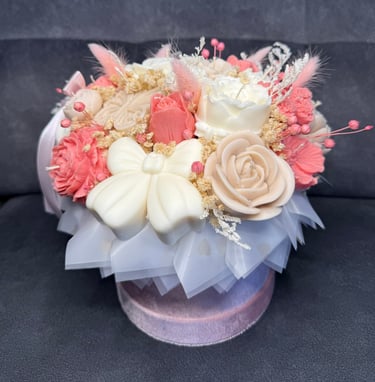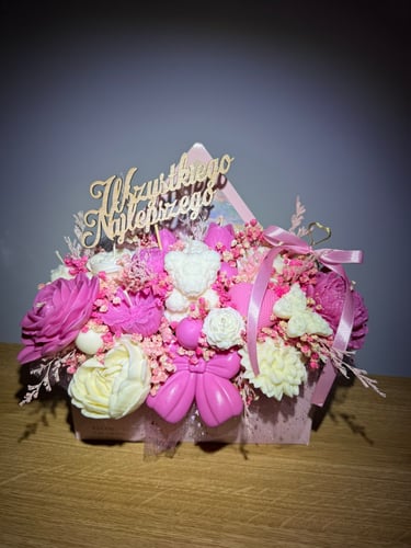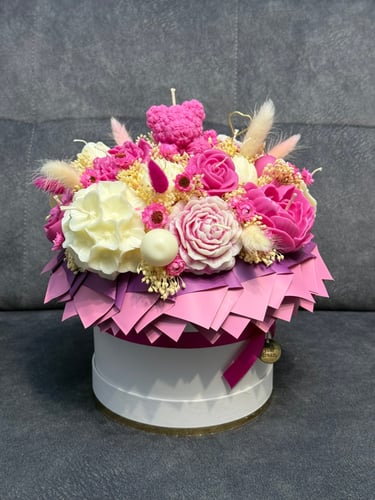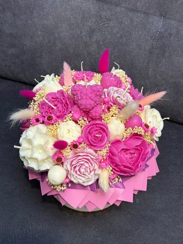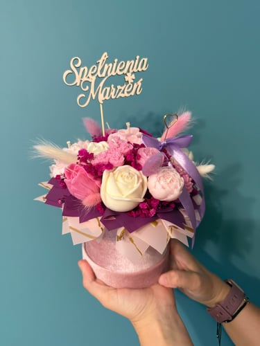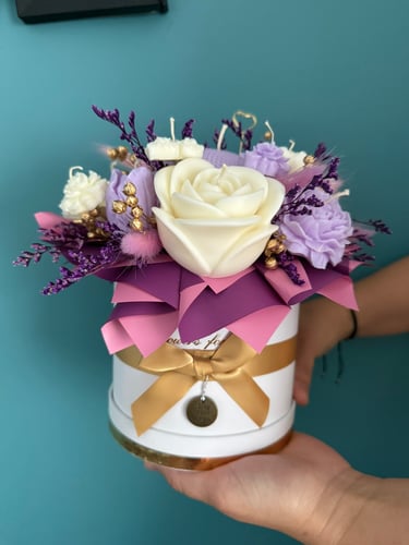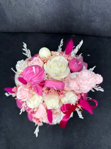 Mam dla Ciebie wyjątkowy flower box – całość wykonana ręcznie z moich sojowych świec! Każdy element to niepowtarzalny kształt, bajeczny kolor i niezwykły zapach Vanilla Cherry Cream, który rozgrzewa zmysły i wprawia w doskonały nastrój.